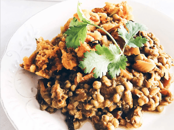 We love our Indian food! This delightful nutrient-packed dish is no exception! Sattvic in nature and packed with the goodness of mung beans, sprouted for extra nutritional value, served with a huge side of love and our special Sweet Potato smash.