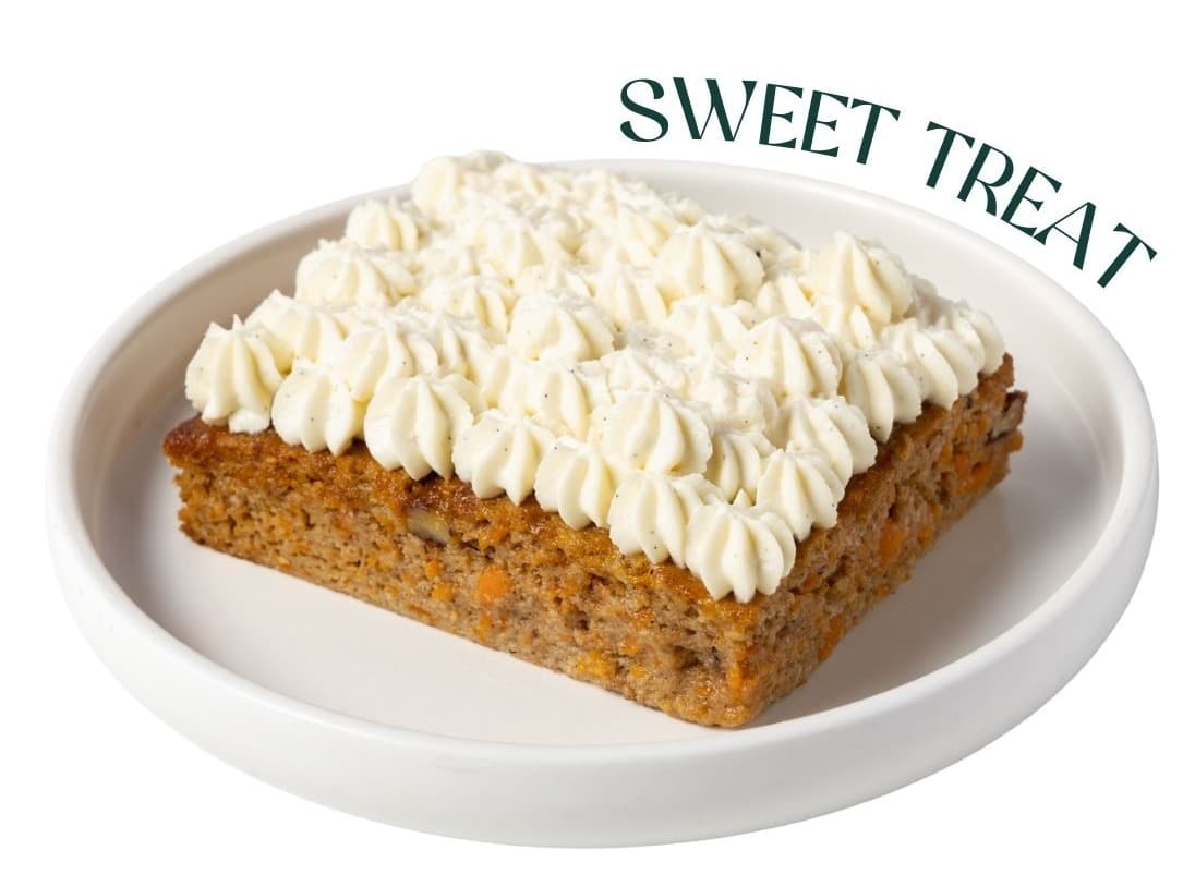 Moist Carrot Cake made with almond meal, sweetened with organic honey & gently spiced with cinnamon, nutmeg and real vanilla bean. Finished with a creamy cream-cheese topping and crunchy pecans. This is comfort baking done the Wilding way.