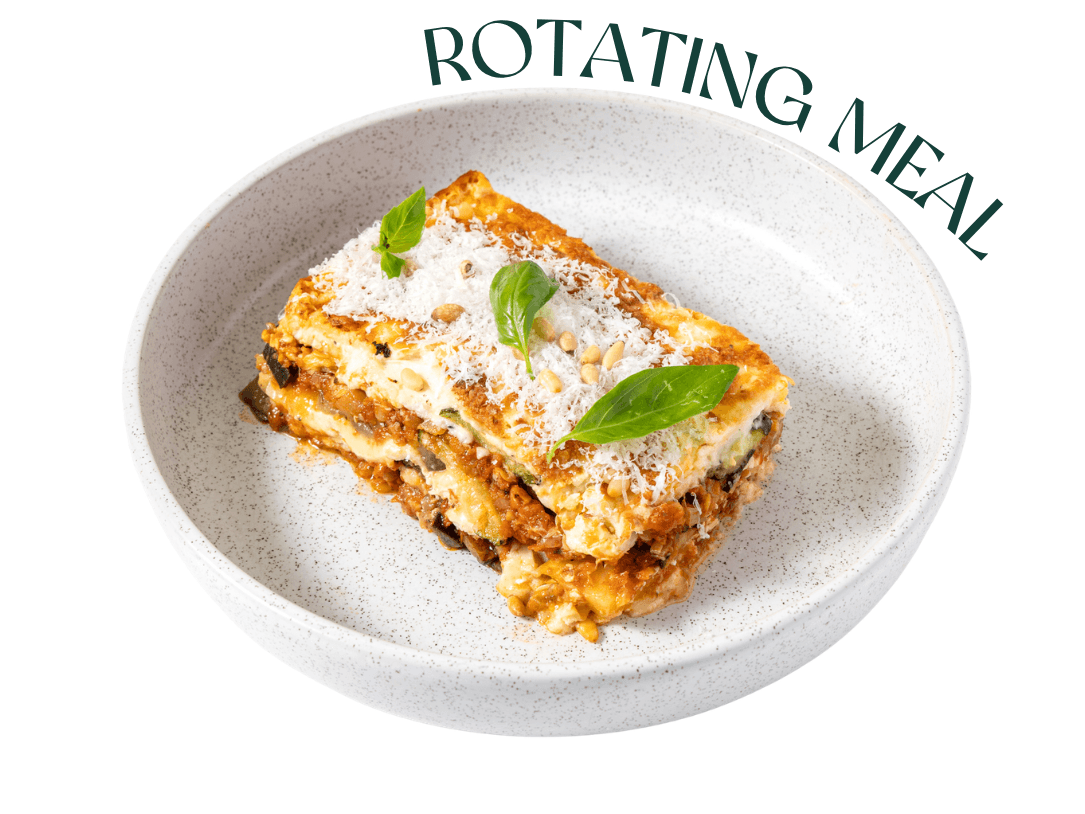 Slow-baked layers of roasted eggplant, zucchini, potato, rich tomato and aromatic spices, finished with a velvety béchamel. A deeply satisfying take on a timeless classic.