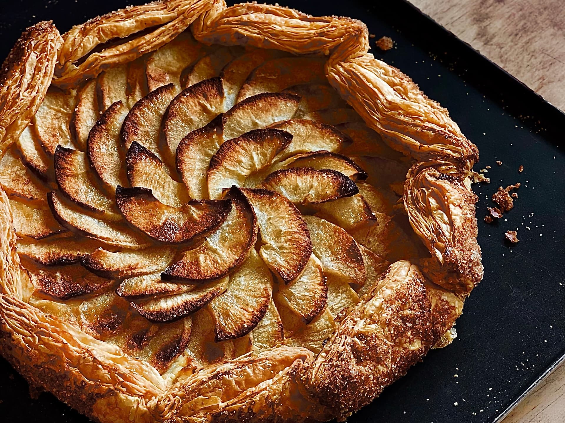 An open tart made with our flaky pastry, vanilla pastry cream, apples and cinnamon. Dairy. Serves 8-10. 10 inch.