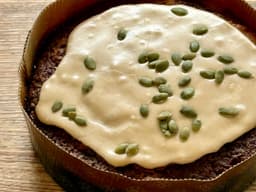 A spiced carrot and honey cake using wholegrain flour, free range eggs, local honey and winter spices. Also with the additions of a few toasted pumpkin seeds, dried apricots and a cinnamon orange icing. Dairy Free. DE.