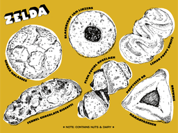A box of 12 assorted cookies including brownie hamantaschen, blackberry linzers, ginger molasses spiced cookies, povidl plum rugelach, lemon poppy spritz and fennel chocolate biscotti! Contains almonds, dairy.